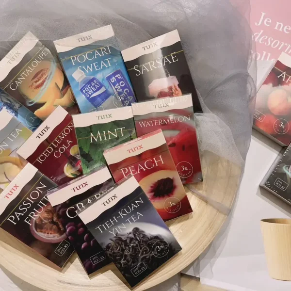 葡萄, 西瓜, 百香, 荔枝, 蜜桃, 鳳梨, 芭樂, 蘋果, 哈密瓜, 藍莓, 鐵觀音, 檸檬茶, 礦力, 凍檸可樂, 沙士, 薄荷, 原味, 綠豆, 龍井, 冰棍, 南極冰, 蔓越莓, 水梨